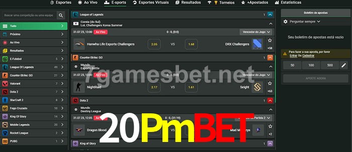 O 20Pmbet oferece uma grande seleção de opções de apostas em e-sports com probabilidades competitivas